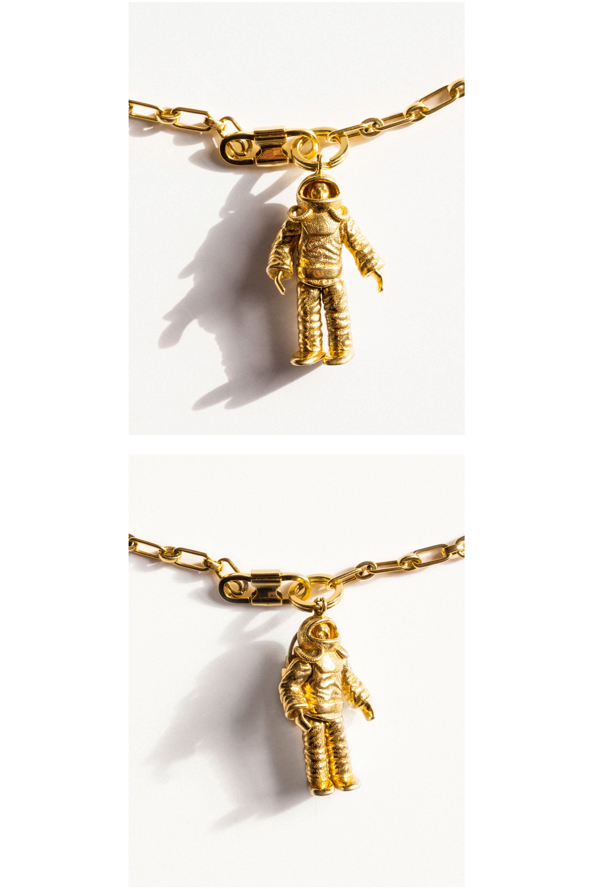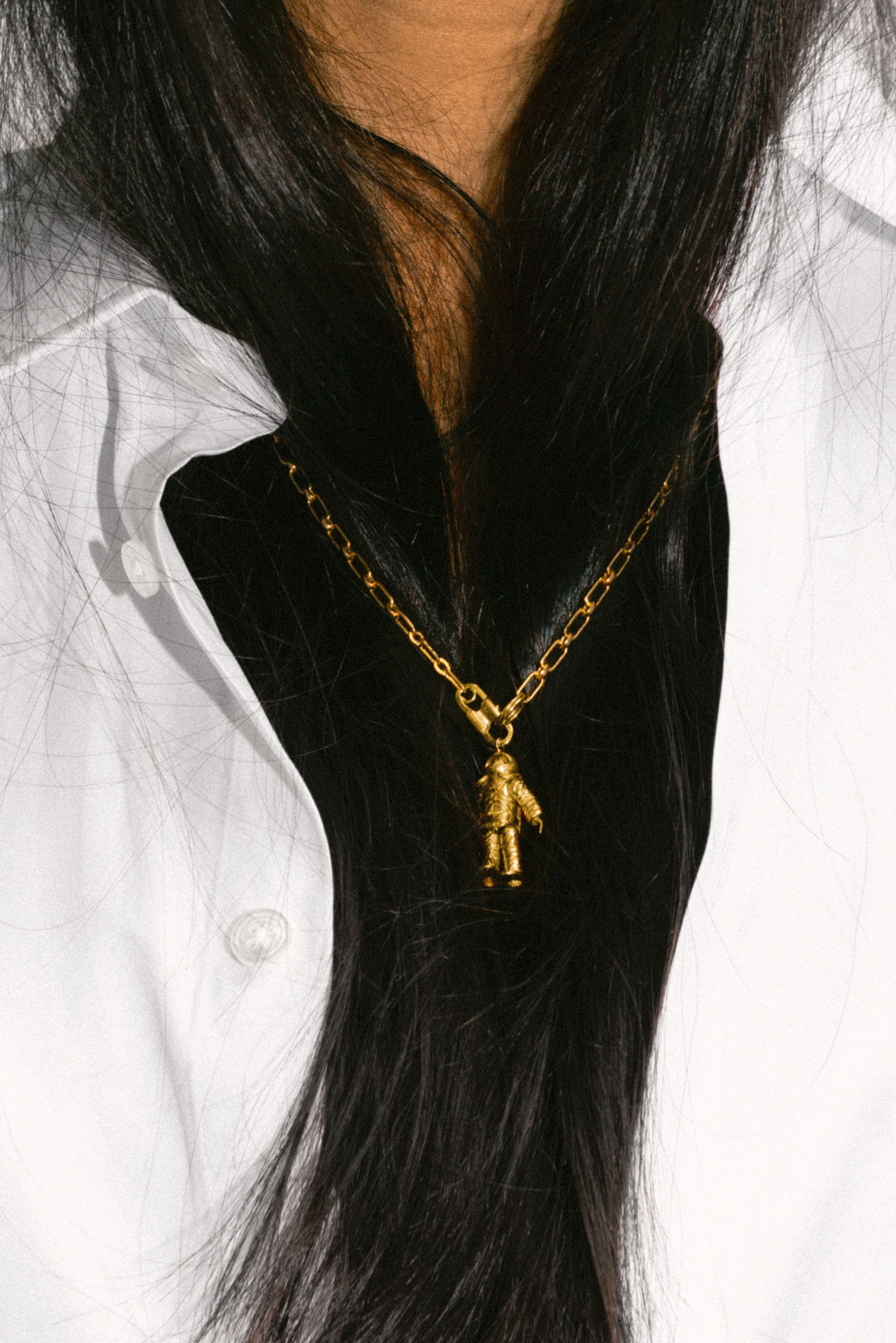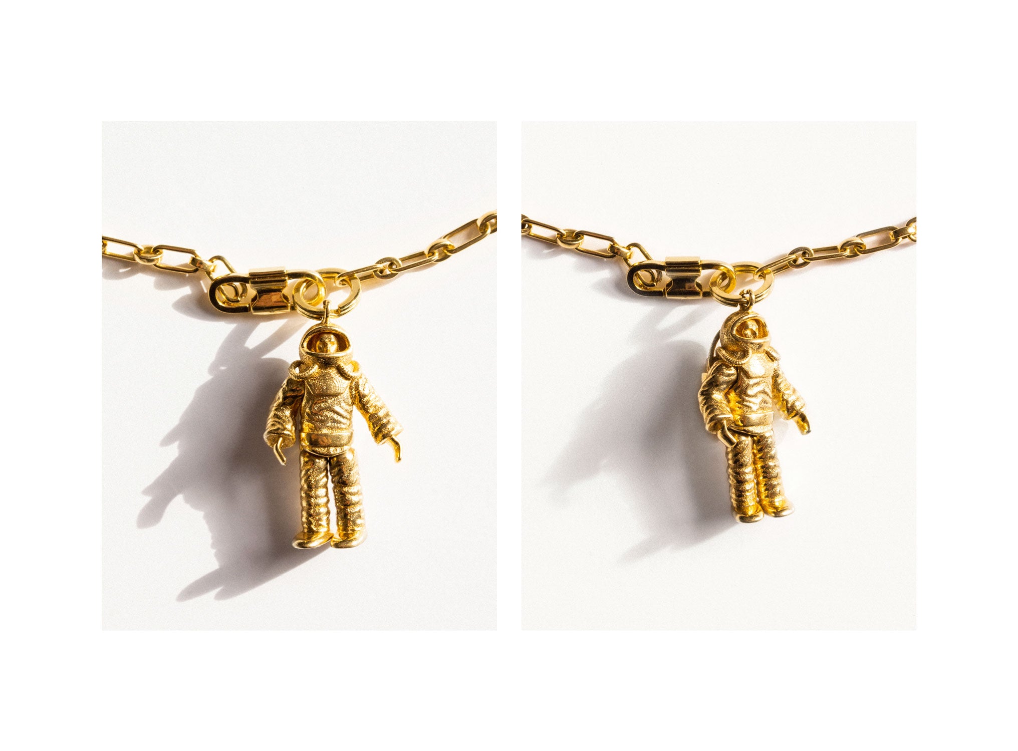 From an astronaut charm, recalling a toy found at a flea market in New York, to a wheat–field pendant, the pieces speak to the value of everyday experiences and objects. They are personal without being overly precious, connecting the commonplace with craft.
